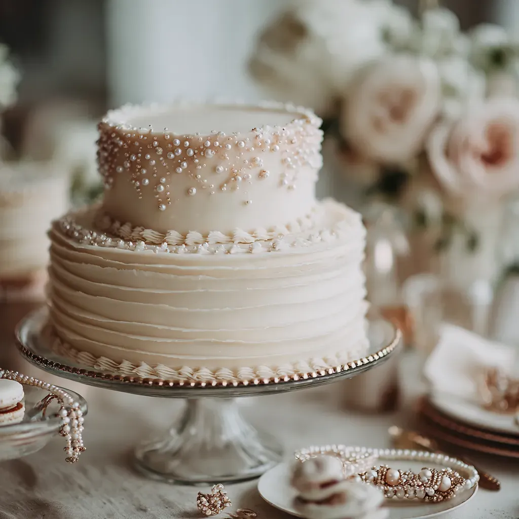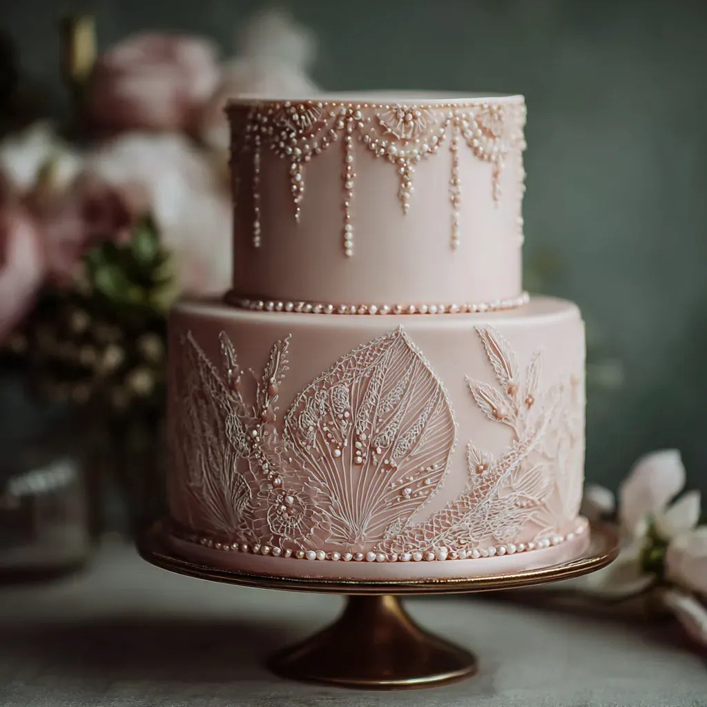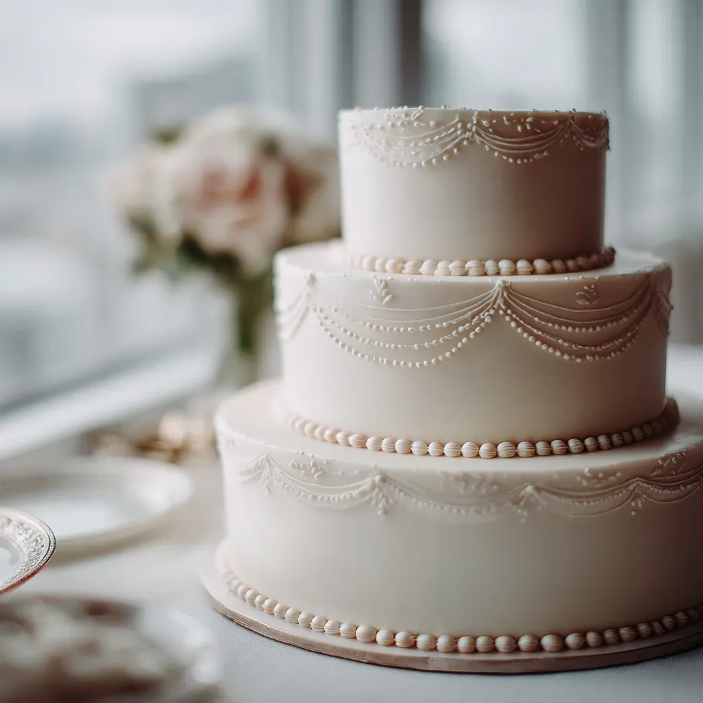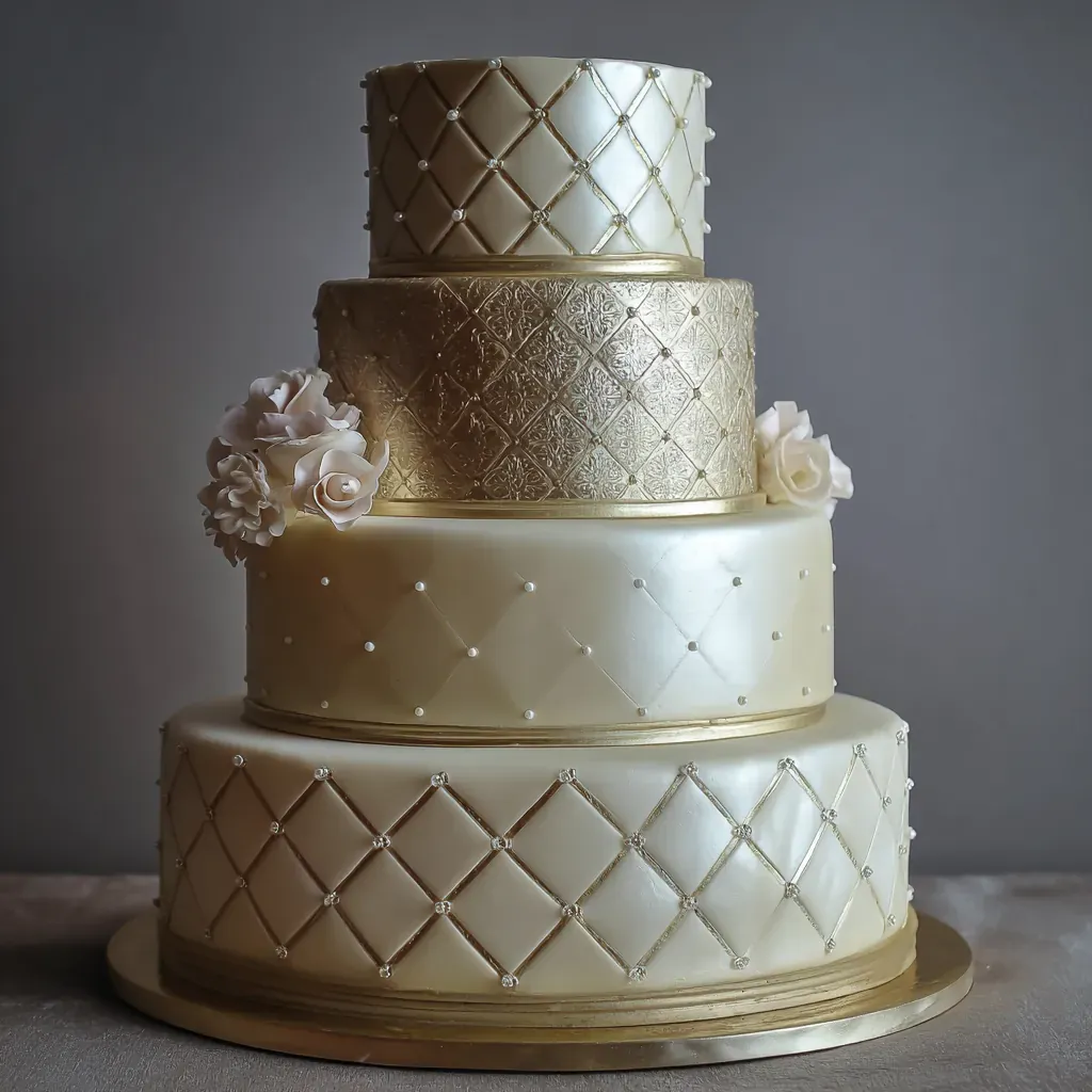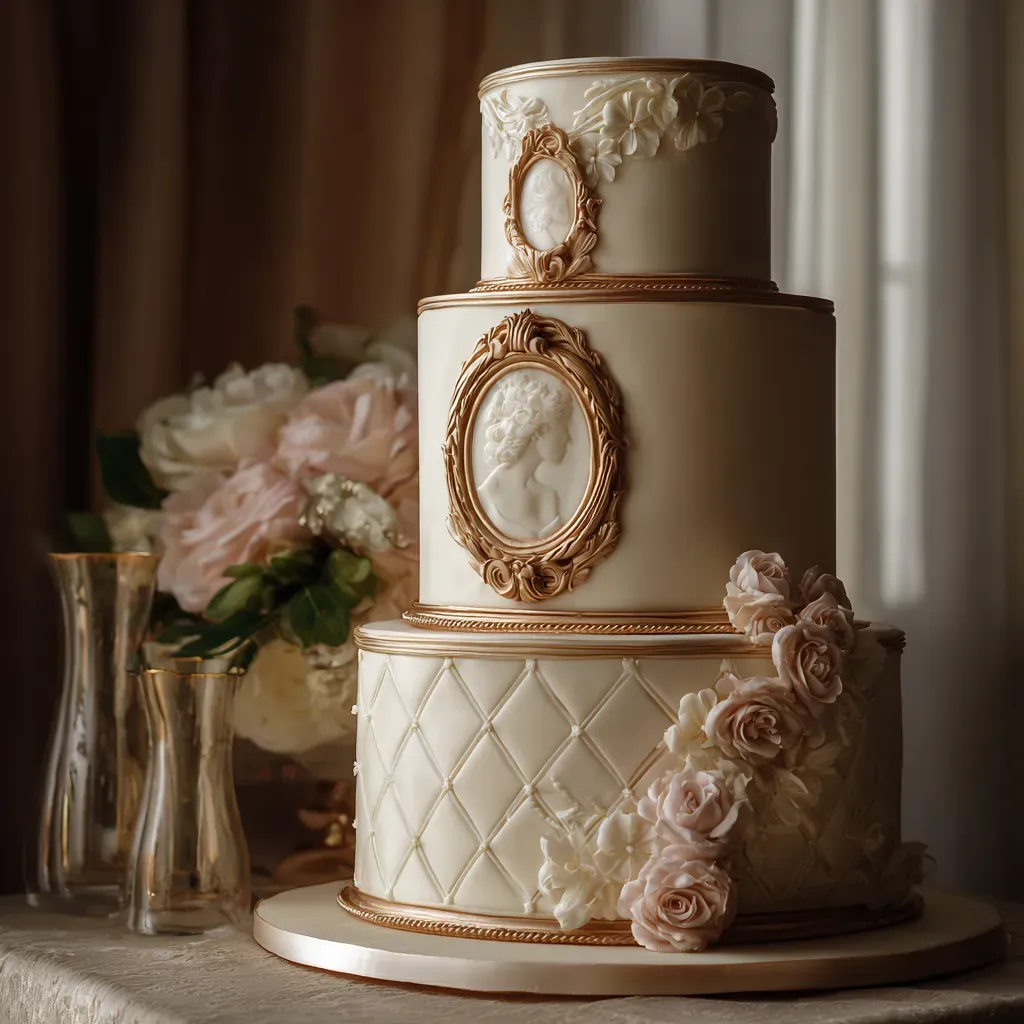 Proper elegant tiers, sporting royal icing, delicate lace, and quilted or draped patterns.