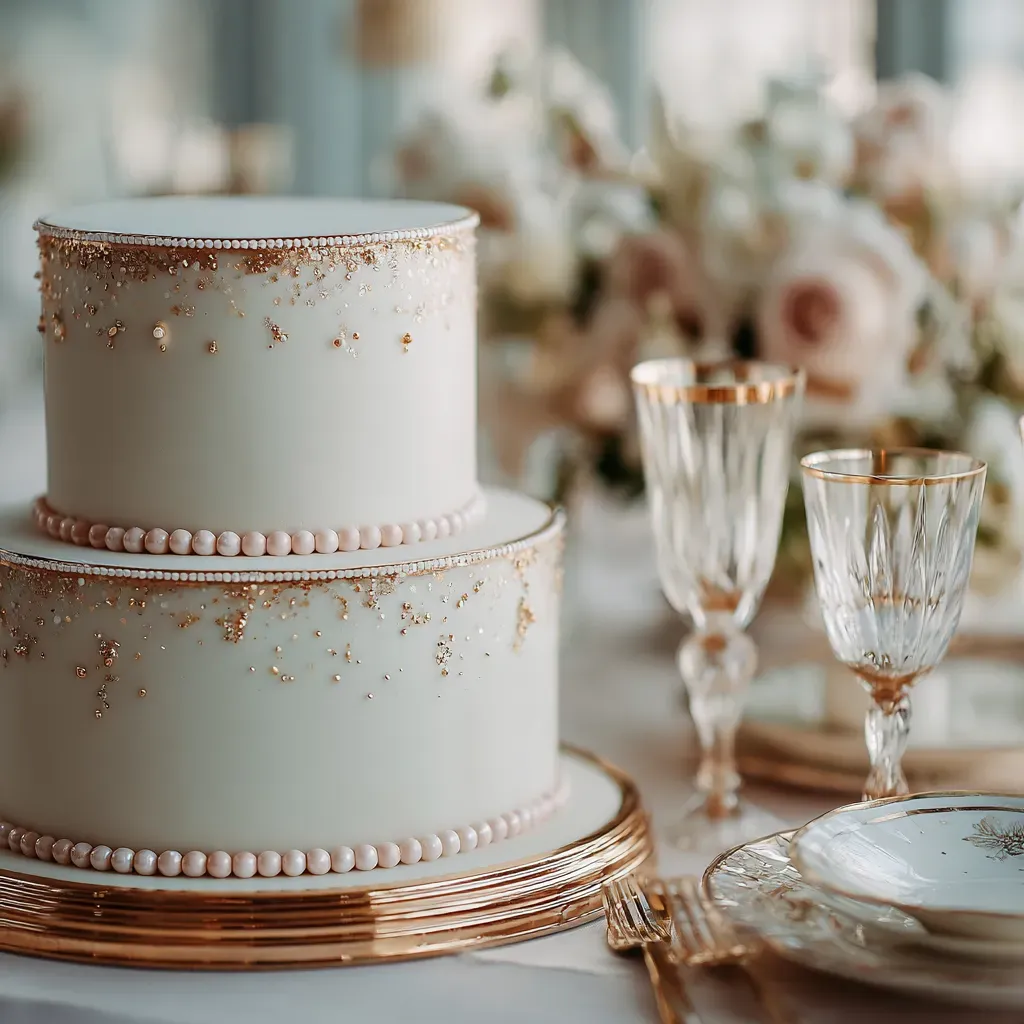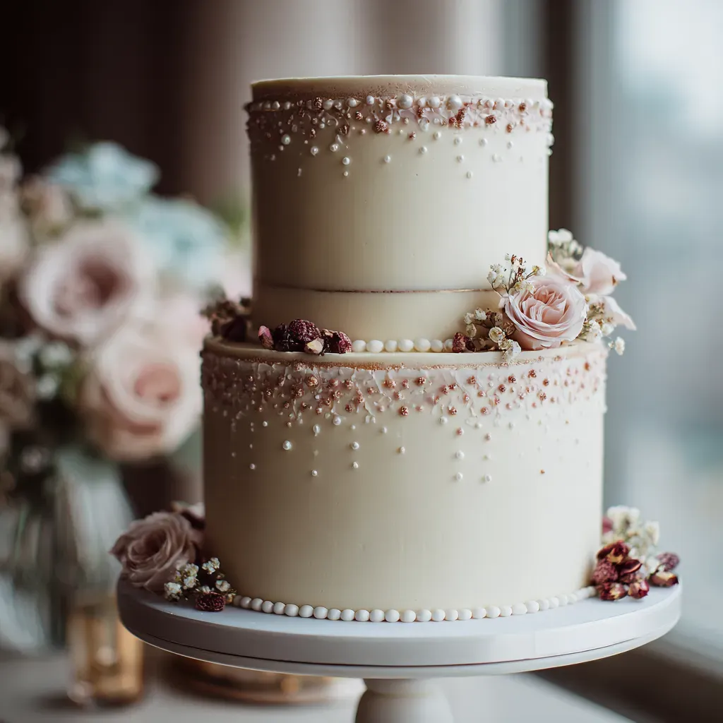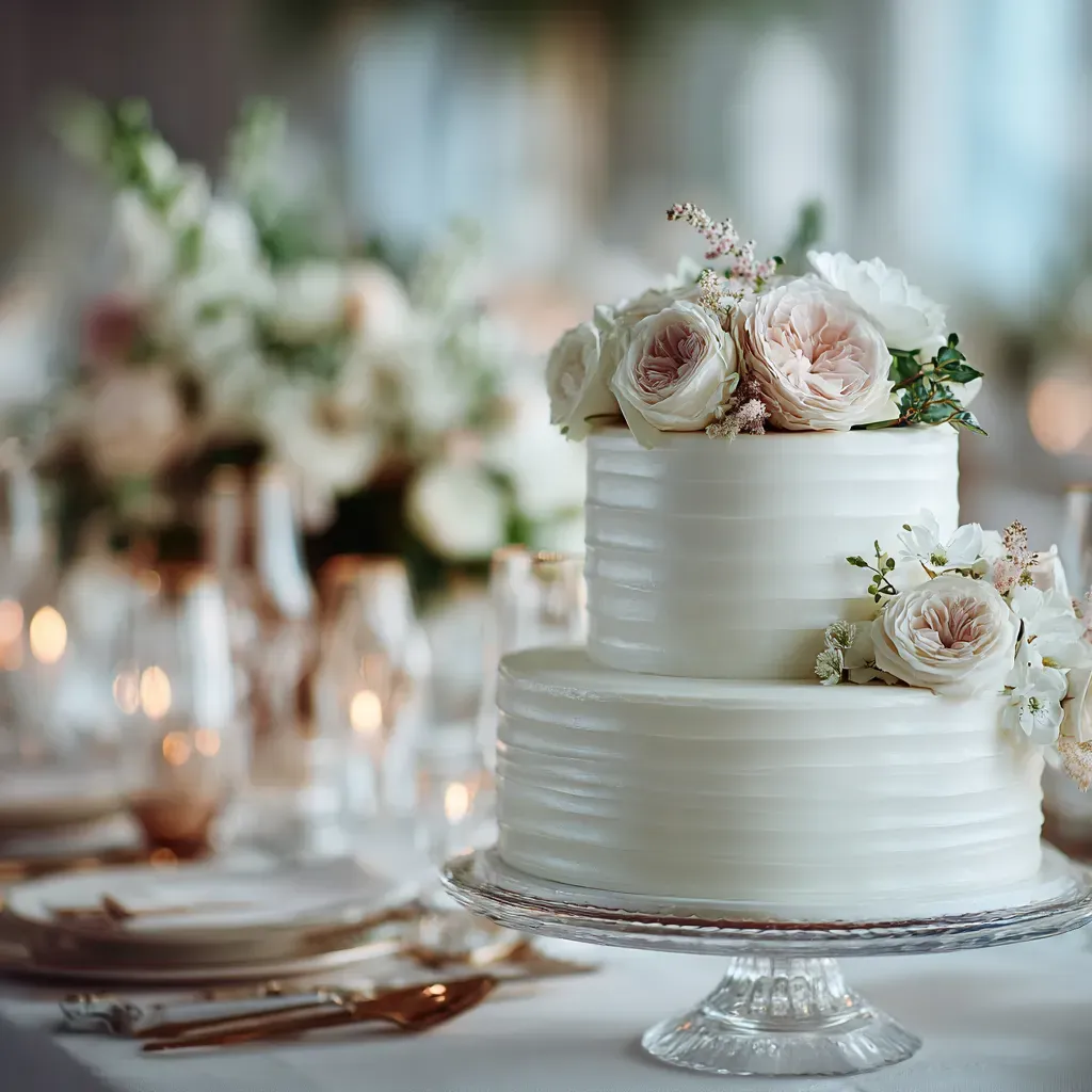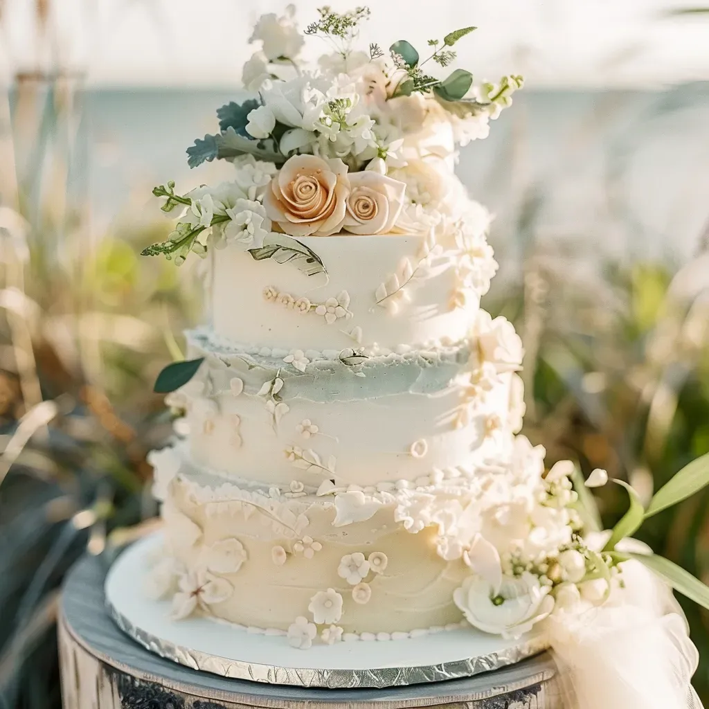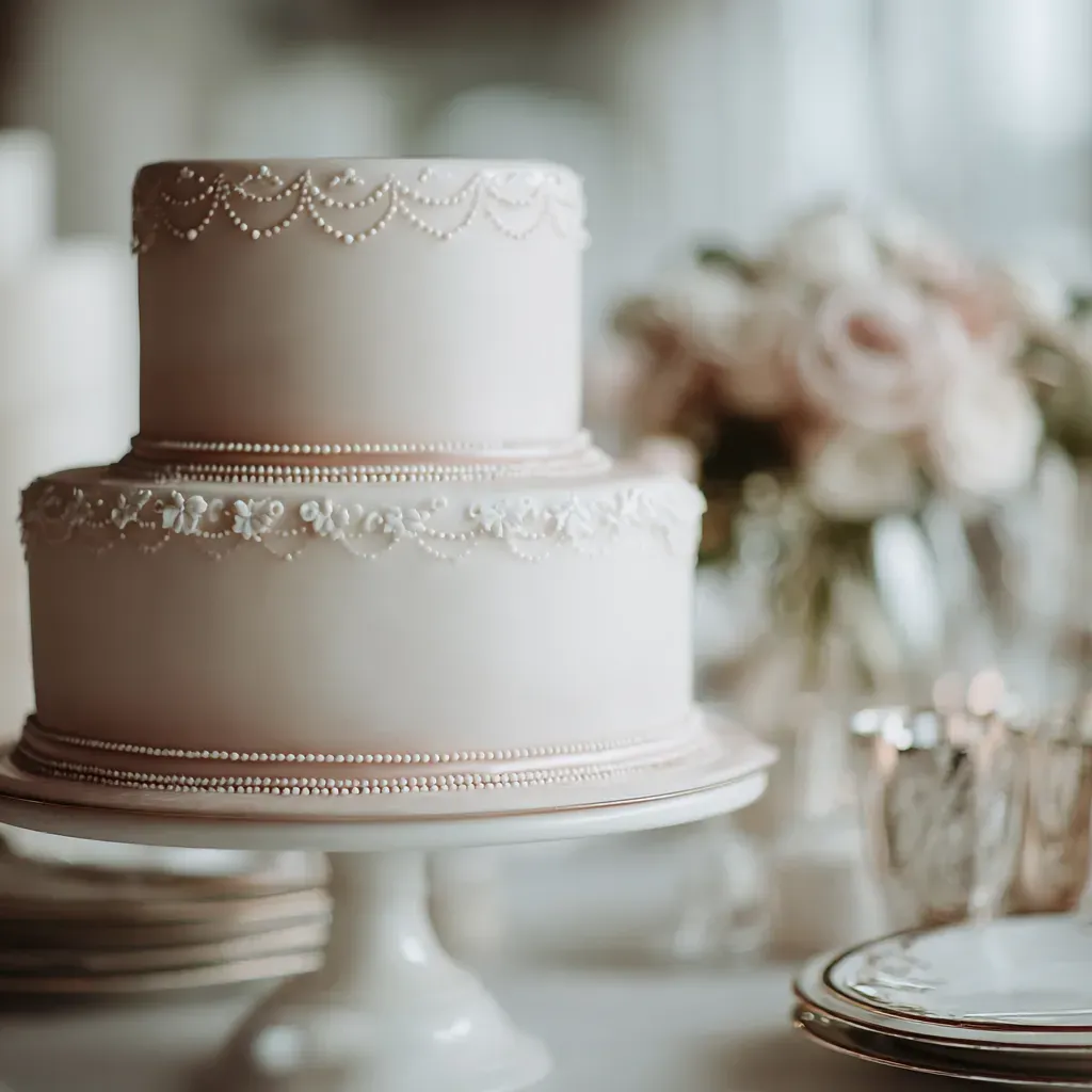 Proper elegant tiers, sporting royal icing, delicate lace, and quilted or draped patterns.
