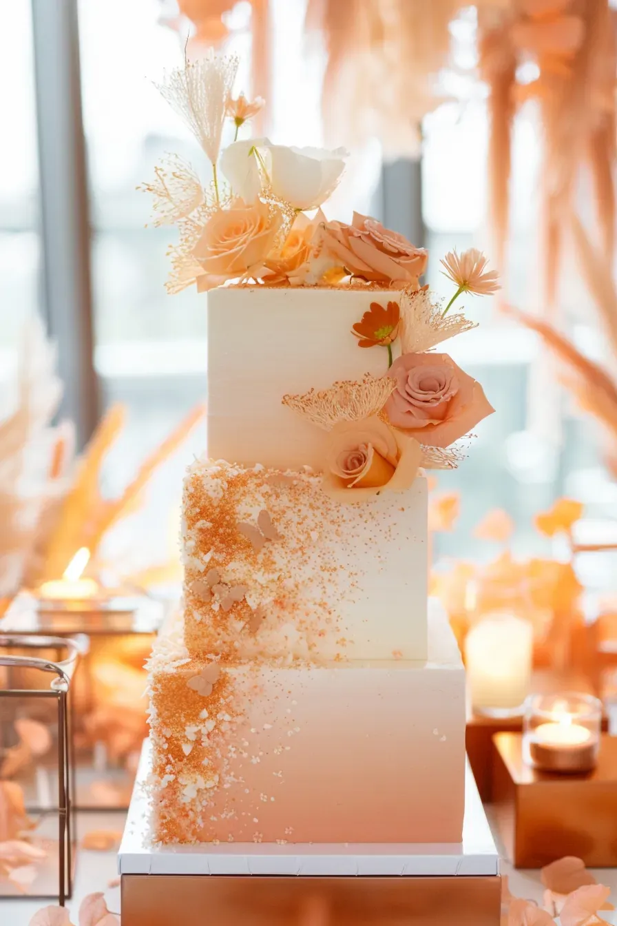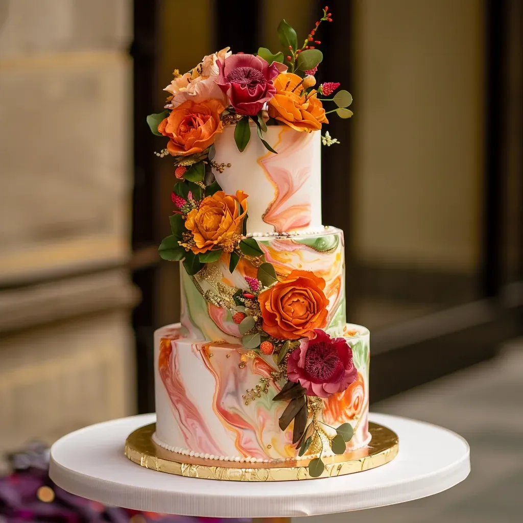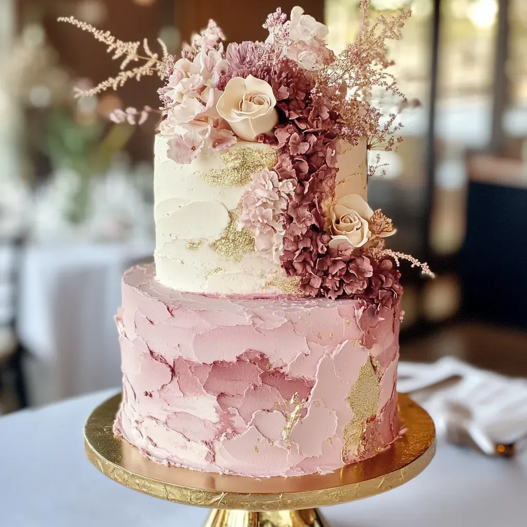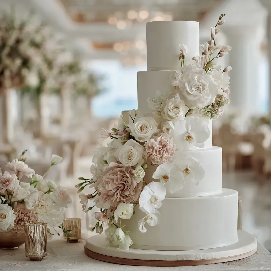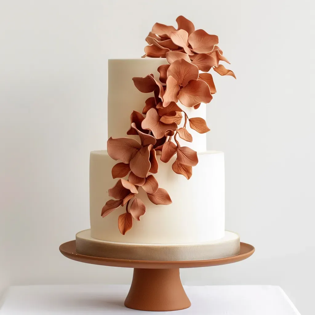 Stunning designs with clustered or cascading sugar and fresh flowers, plus elegant texture.