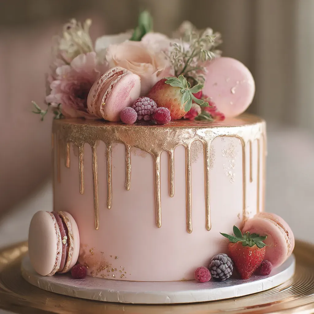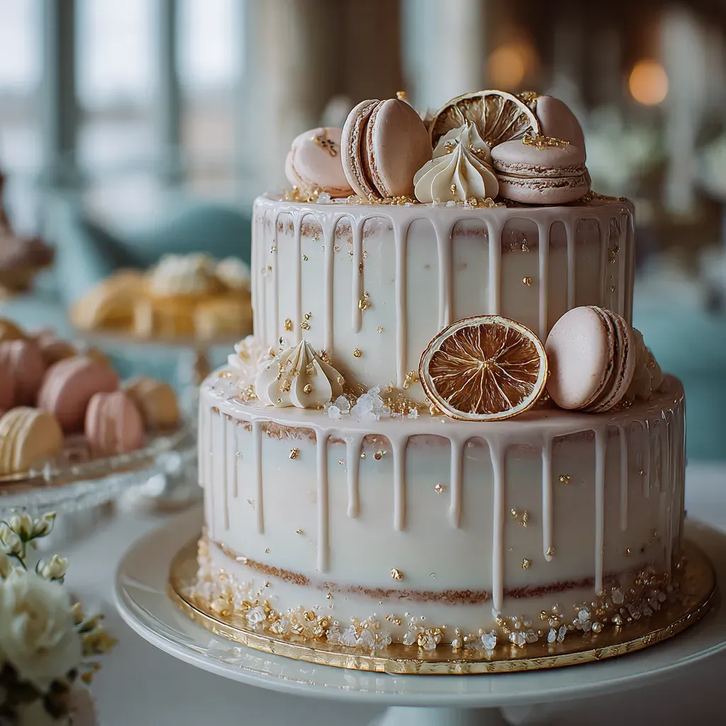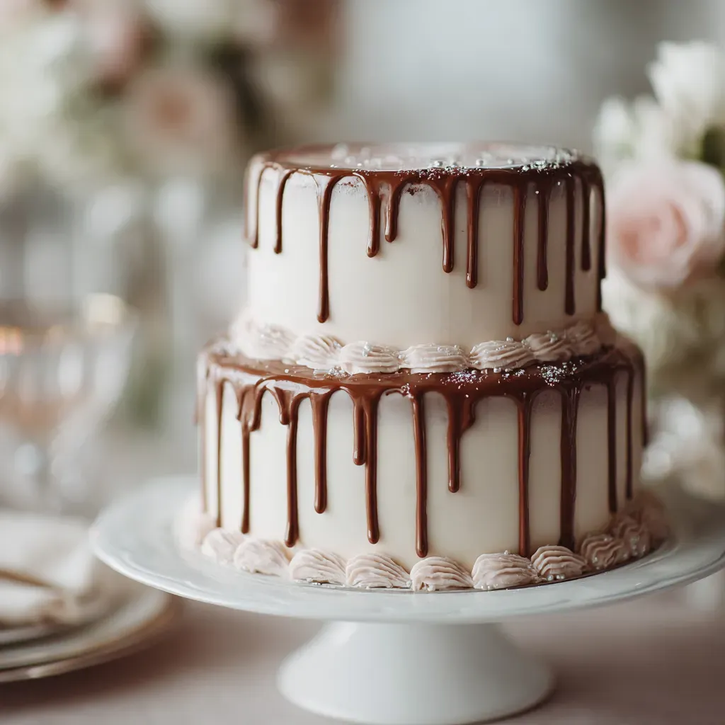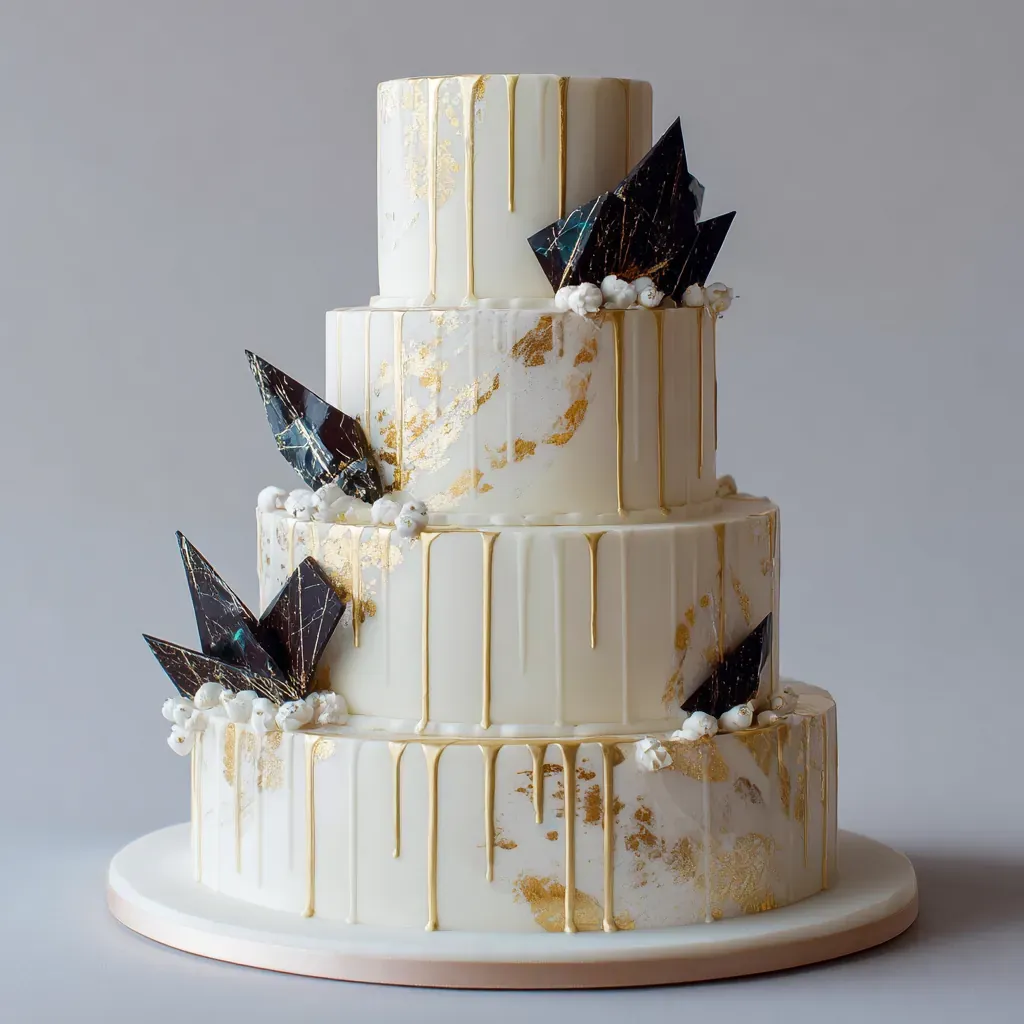 Trendy towers featuring a sweet metallic, chocolate, or ganache drip and epic toppings.