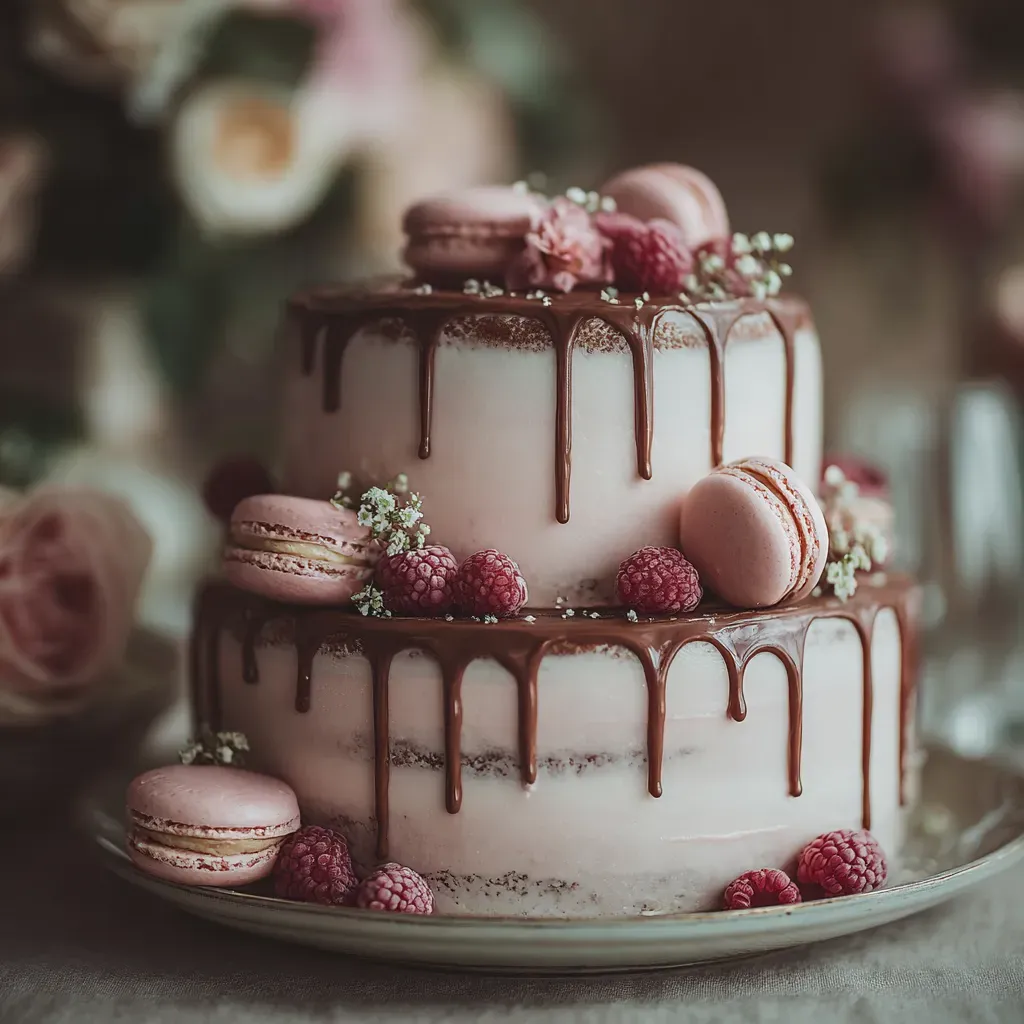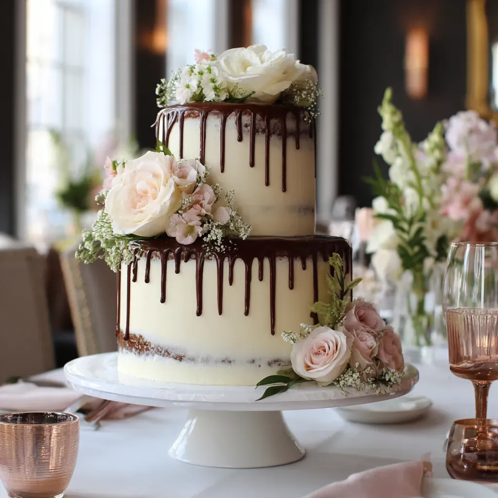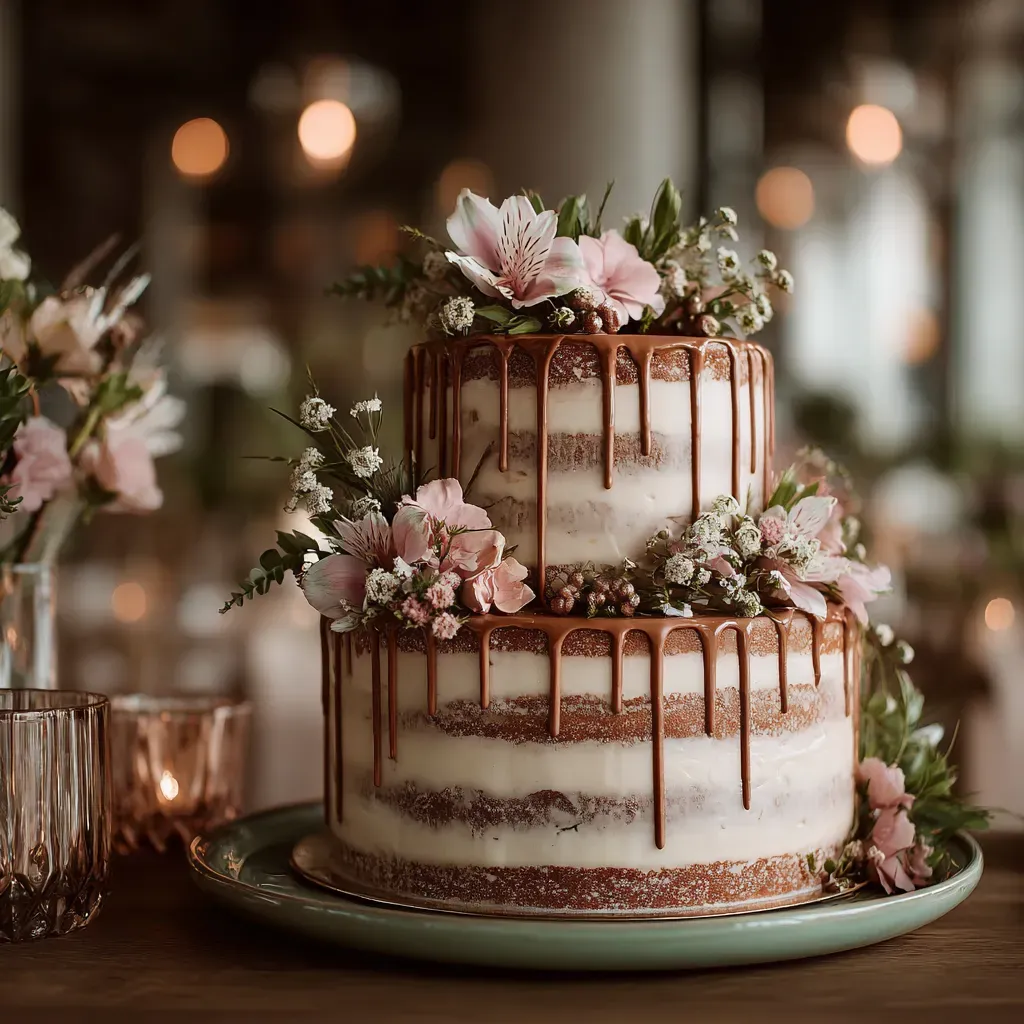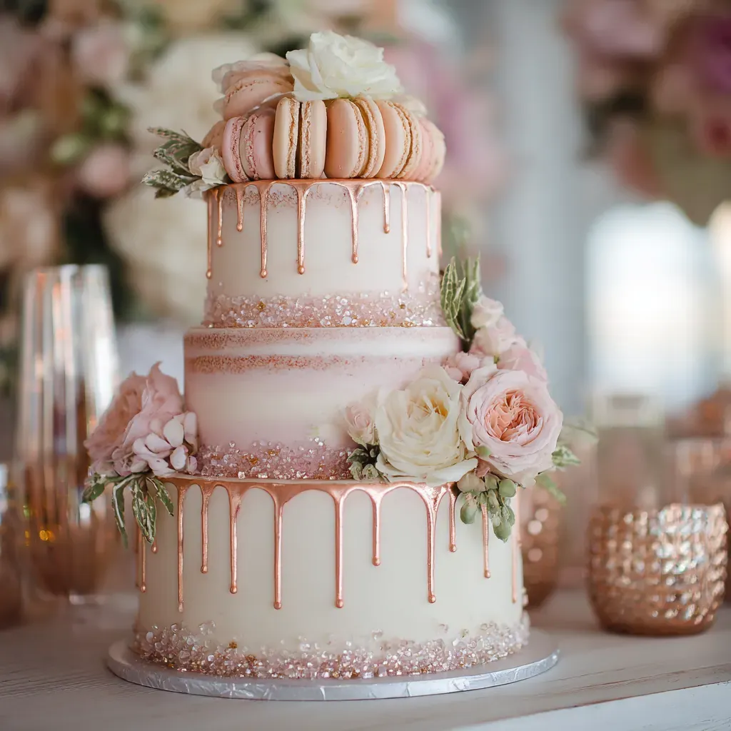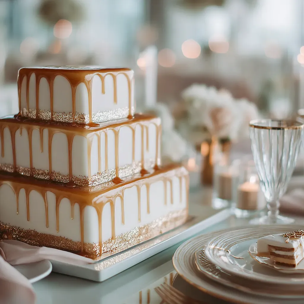 Trendy towers featuring a sweet metallic, chocolate, or ganache drip and epic toppings.