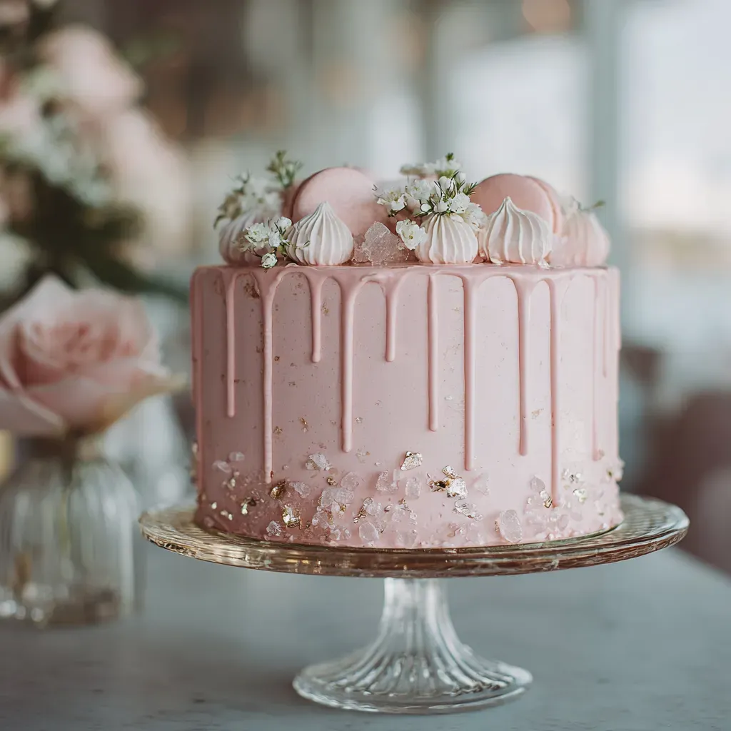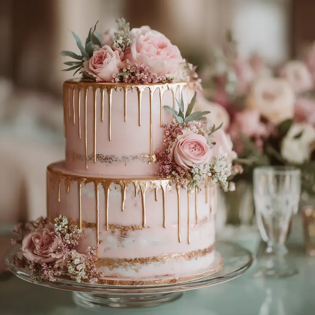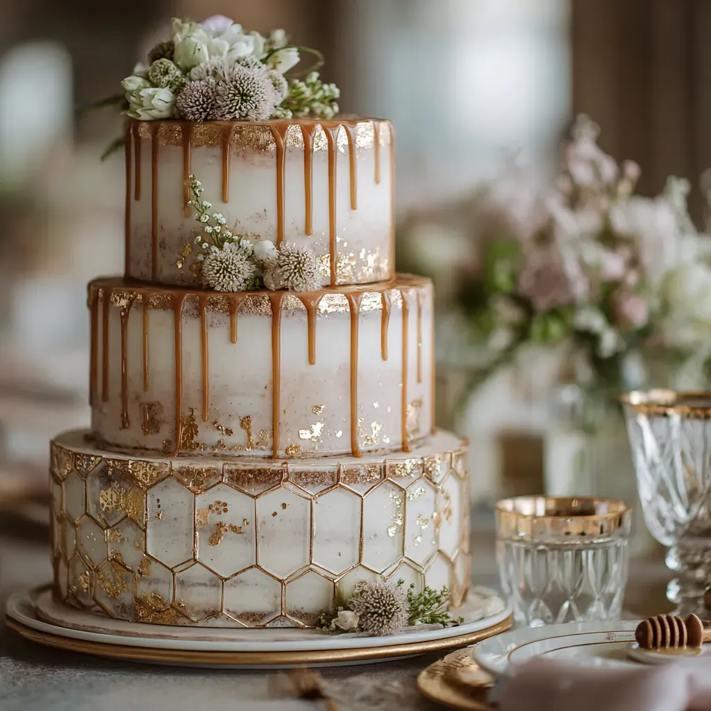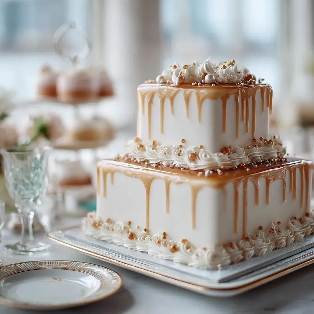 Trendy towers featuring a sweet metallic, chocolate, or ganache drip and epic toppings.