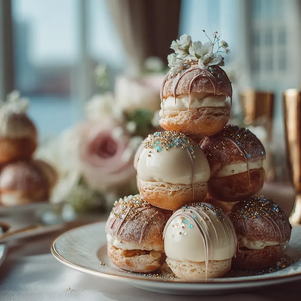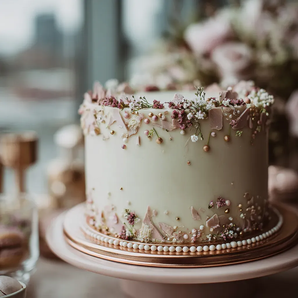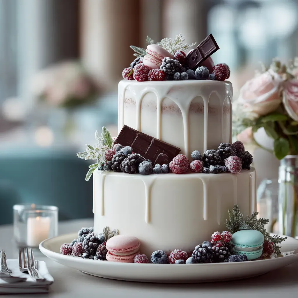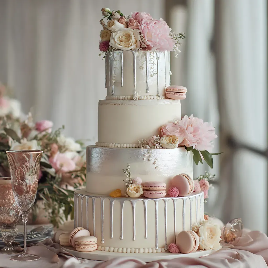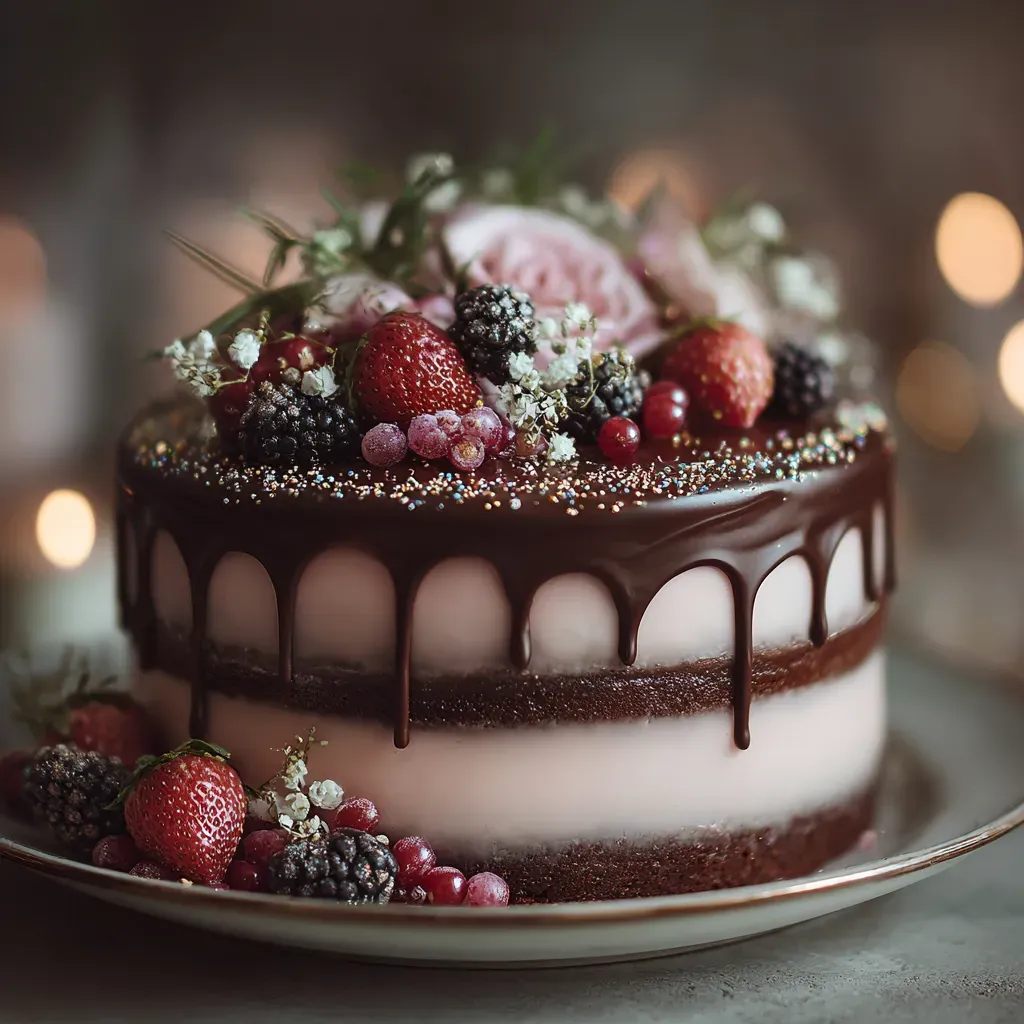 Trendy towers featuring a sweet metallic, chocolate, or ganache drip and epic toppings.