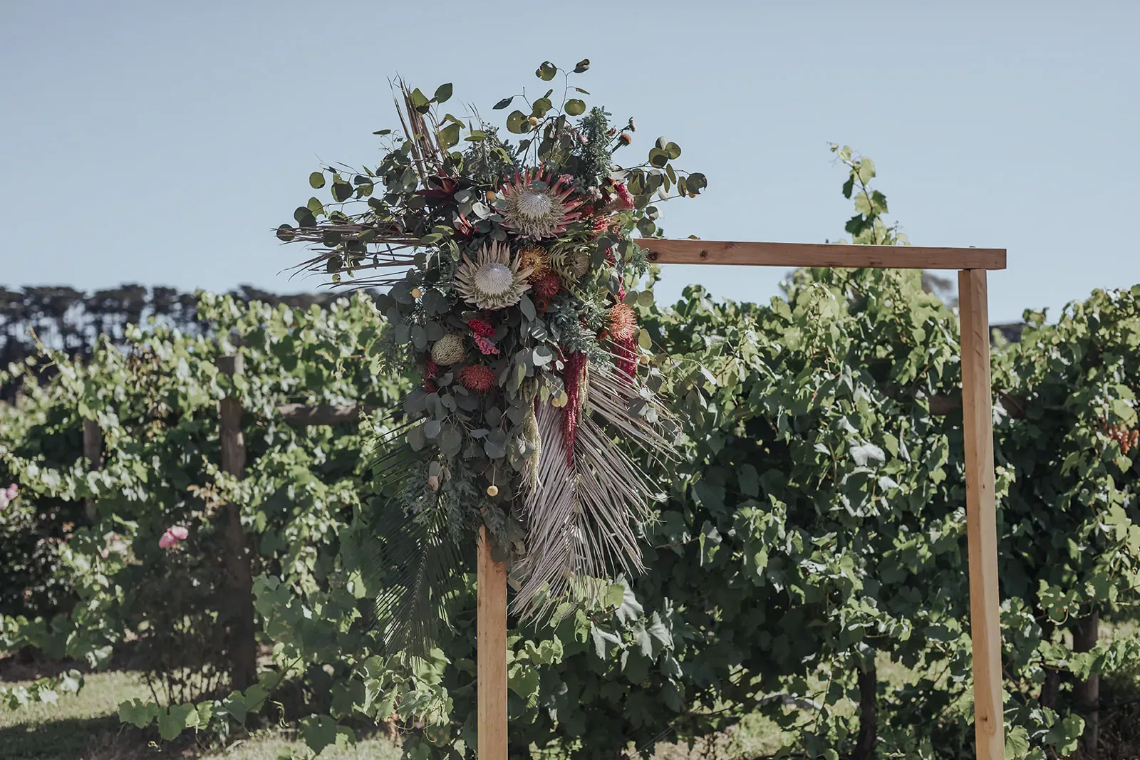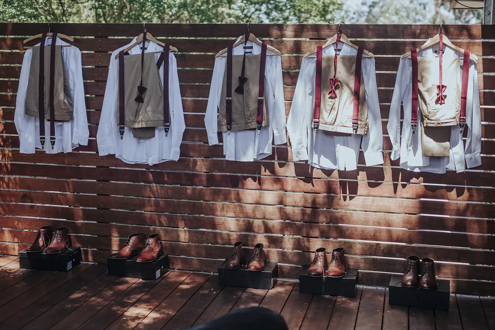 Set outdoors in a lush garden filled with greenery, the setting felt natural and warm. Rustic wooden signage, a floral arch, and wide open skies tied every detail into the landscape beautifully.