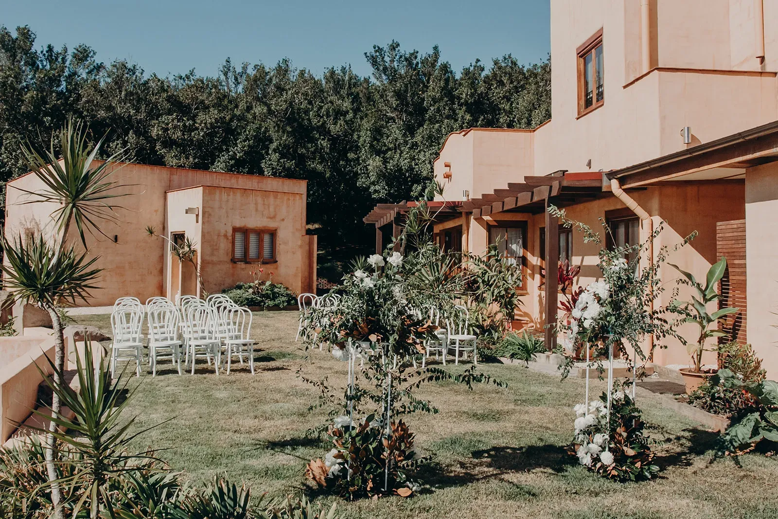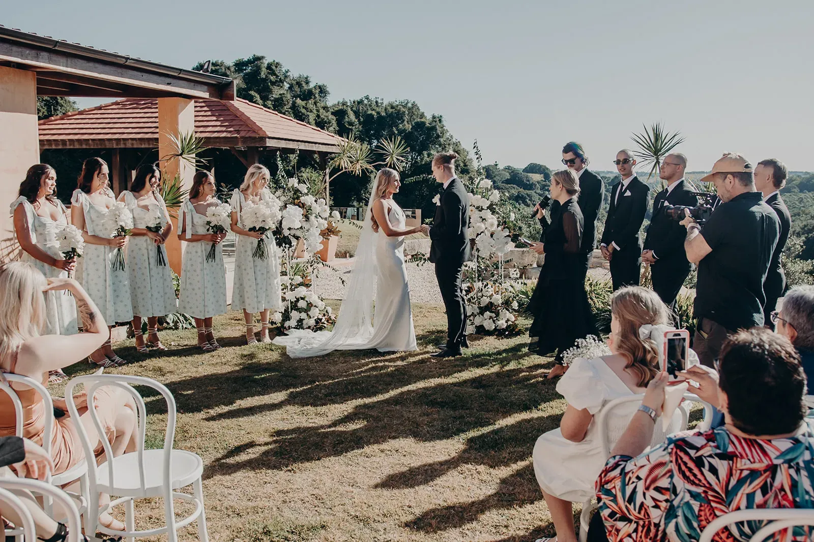 We fell in love with the terracotta architecture and classic Tuscan lines, paired with effortless décor filled with olive branches, citrus touches, lush greenery, and natural textures. The shared dining, local wines, and long tables brought everyone together in the warmest way, all wrapped in that golden Byron light that made every photograph feel like pure romance.