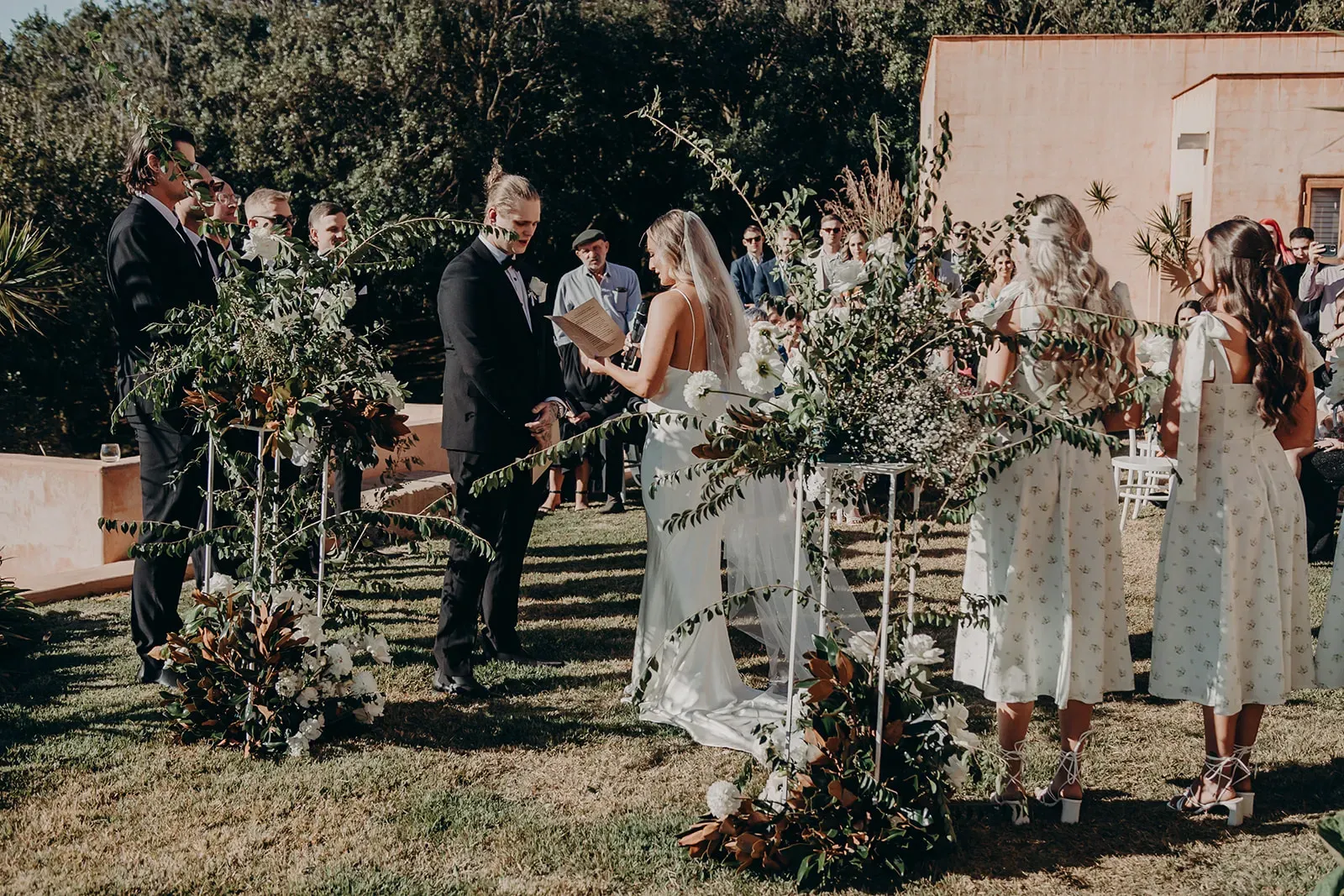 No long flights. No logistics abroad. Just a scenic drive to your own slice of Italy. Ceremony moments are paired with acoustic strings, intimate floral work, and authentic styling. As the sun sets, long wooden tables fill with shared plates, artisan cheeses, fresh produce, and crisp local wines, a true Tuscan feast under the stars.